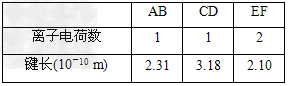 4、选择题 AB、CD、EF均为1∶1型离子化合物,根据下列数据判断它们的熔点由高至低的顺序是