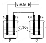 5、计算题 如图的装置进行电解实验:A极是铜锌合金,B极为纯铜,电解质中含有足量的铜离子。通电一段时间后,若A极恰好全部溶解,此时B极质量增加7.68g,溶液质量增加0.03g,则A合金中Cu、Zn原子个数比为