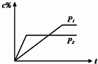 1、选择题 在温度相同,压强分别为P1和P2的条件下,A(g)+2B(g)?nC(g)的反应体系中,C的百分含量(c%)与时间t的曲线如图所示,下面结论正确的是( )