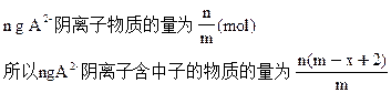 3、选择题 元素A不存在同位素,阴离子A2-有x个电子,若A元素的原子质量数为m,则n gA2-阴离子所含中子的物质的量为?