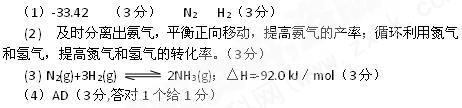 5、填空题 (15分)氨是最重要的氮肥,是产量最大的化工产品之一。课本里介绍的合成氨技术叫哈伯法,是德国人哈伯在1905年发明的,其合成原理为:N2(g)+3H2(g)