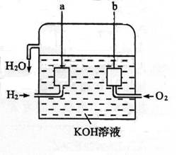 5、填空题 美国阿波罗宇宙飞船上使用的氢氧燃料电池是一种新型的电池,其构造如图所示:两个电极均由多孔碳制成,通入的气体由孔隙中流出,并从电极表面放出。