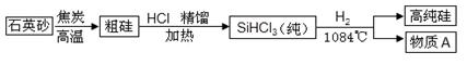 物质A的化学式为 ;制备粗硅的反应为置换反应,且生成的气体具有还原性,该反应的化学方程式为 (提示:石英砂的主要成分是SiO2) 。