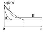 (2)Ⅰ、Ⅱ的区别是催化剂的比表面积不同,因此Ⅱ的反应速率较快,但催化剂不影响平衡的移动。Ⅰ、Ⅲ的区别是温度变化,温度升高,化学反应速率加快,达到平衡的时间缩短,NO转化率降低,故最终Ⅲ中c(NO)较Ⅰ、Ⅱ中c(NO)大。