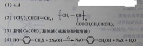 。⑷由题知B[HOOC(CH2)2COOH]为二元羧酸,D[HO(CH2)4OH]为二元醇,两者发生缩聚反应生成PBS聚酯。⑸A中含有碳碳双键,故能被KMnO4溶液氧化而使酸性KMnO4溶液褪色、与Br2发生加成反应使Br2的CCl4溶液褪色、与HBr等加成;因分子中含有-COOH,可与Cu(OH)2、Na2CO3等发生反应;由A(分子式为C4H4O4)完全燃烧:C4H4O4+3O2=4CO2+2H2O可知1molA消耗3 mol O2,故ac正确。