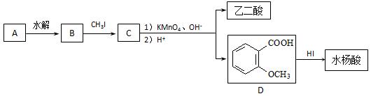 2、填空题 (14分)芳香族化合物A广泛存在于植物中,具有光敏性、抗菌和消炎作用。经实验测定,A由碳、氢、氧三种元素组成,相对分子质量小于200,其中碳、氢元素的质量分数之和为78.1%。经红外光谱测定,在A的结构中存在C=O双键和C?O单键,不含O?H。A经下列步骤转变为乙二酸和水杨酸。