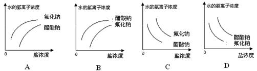 10-5,能正确描述在它们的钠盐溶液中,水电离出的c(H+)与盐浓度的关系曲线的是