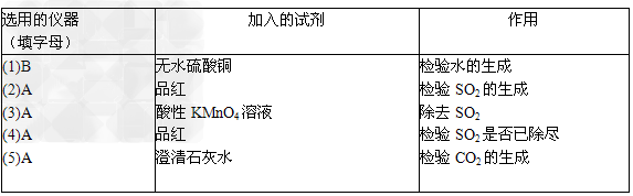 (2)请你从下图中选用所需的仪器(可重复使用)组成一套装置帮助该小组实现他们的目的.现提供浓H2SO4、木炭和酸性KMnO4溶液,无水硫酸铜,其他固、液试剂自选。(连接和固定仪器用的玻璃管、胶管、铁夹、铁架台及加热装置等均略去)?
