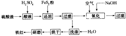 2、填空题 以黄铁矿为原料制硫酸产生的硫酸渣中含Fe2O3、SiO2、Al2O3、CaO、MgO等。现用硫酸渣制备铁红的过程如下