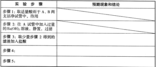 (1)提出合理的假设:该酸雨中的溶质除H2SO4、HC1外,该小组同学根据硫酸型酸雨的形成过程,预测主要溶质还一定有?。