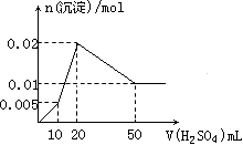 (5)若将此小块镁铝合金先加入10 mL 1 mol·L-1 Ba(OH)2溶液中,充分反应后过滤,在滤液中逐滴滴入0.5 mol·L-1 H2SO4,完成下边图象(横坐标表示H2SO4体积,纵坐标表示沉淀的物质的量)。