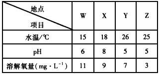 (1)某城镇生产、生活的分布情况如下图所示,河流中W、X、Y、Z处某次水样抽测结果如下表所示。
