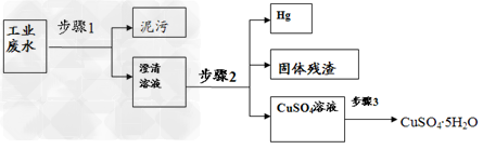 5、填空题 已知某工业废水中含有大量CuSO4,少量的Ag+、Hg2+以及部分污泥,在实验室中通过下述过程可从该废水中回收硫酸铜晶体及其它物质。?