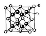 (5)D跟E可形成离子化合物,其晶胞结构如右图。该离子化合物晶体的密度为pg.cm。3,则晶胞的体积是?。(用含p的代数式表示)。