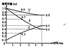 2、填空题 (4分)某温度时,在2L容器中X、Y、Z三种物质随时间的变化关系曲线如图所示。
