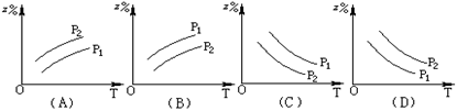 3、选择题 如图所示,反应:X(气)+3Y(气)? 2Z(气)+Q(Q>0),在不同温度、不同压强(p1>p2)下,达到平衡时,混合气体中Z的百分含量随温度变化的曲线应为?(?)
