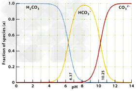 B.在pH为6.37及10.25时,溶液中c(H2CO3)=?c(HCO3-)=?c(CO32-)