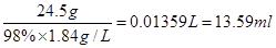 则需要浓硫酸的体积是