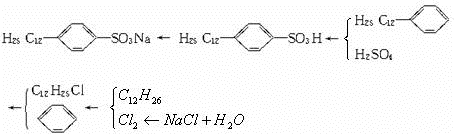 C2H5+HCl,现从苯出发制取十二烷基苯,再进一步制取合成洗涤剂十二烷基苯磺酸钠,分子式为