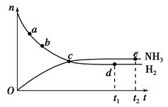 2NH3(g),673 K、30 MPa下n(NH3)和n(H2)随时间变化的关系如下图所示。下列叙述正确的是? ( )。