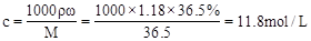 (1)此浓盐酸的物质的量浓度为_________