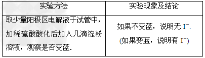 (3)电解过程中,为确定电解是否完成,需检验电解液中是否有I-.请设计一个检验电解液中是否有I-的实验方案,并按要求填写下表.要求:所需药品只能从下列试剂中选择,实验仪器及相关用品自选.试剂:淀粉溶液、碘化钾淀粉试纸、过氧化氢溶液、稀硫酸.