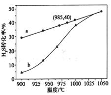 以H2S起始浓度均为c mol/L测定H2S的转化率,结果见图。图中a为H2S的平衡转化率与温度关系曲线,b曲线表示不同温度下反应经过相同时间且未达到化学平衡时H2S的转化率。