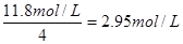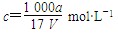 (2)50ml稀释至200ml,说明稀释了4倍。根据稀释过程中溶质不变可知,稀释后的浓度为。