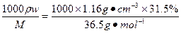 3、计算题 在密度为1.16 g·cm-3的浓盐酸中,含有31.5%的HCl,其物质的量浓度是多大?