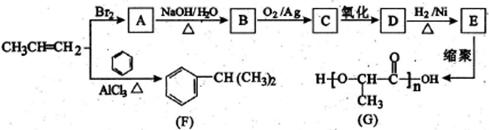 本题解析:(1)根据F的结构简式可知,F的分子式为C9H12。化合物E可以发生缩聚反应生成聚酯,所以F中所含两个官能团的名称是羟基、羧基。
