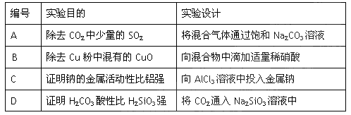 3、选择题 下述实验设计能够达到目的的是?(?)
