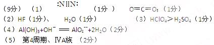4、填空题 下列为元素周期表中的一部分,用化学式或元素符号回答下列问题: