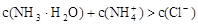 本题解析:A项:也可能是NH4Cl和NH3.H2O的混合溶液,故A错。B项:②关系式违反了电荷守恒,即溶液中电荷总数为0的规则,因此②关系式不肯能成立,故B错。C项:④关系式是溶液呈中性,即氨水略过量,溶质就应该是2种,NH4Cl和NH3.H2O,盐酸属于强电解质,会完全电解;氨水是弱电解质,不完全电解。当c(OH-)=c(H+).那么氨水的浓度一定低于盐酸的浓度。因为不完全电解的关系,所以在混合前,氨水的|PH-7|<盐酸的|PH-7|。所以,盐酸中的c(H+)一定大于氨水中的c(OH-),故C错。故选D。