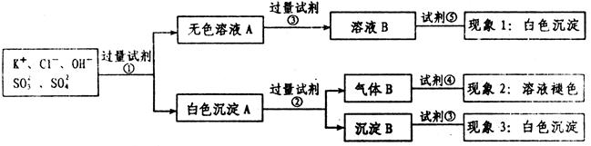 3、选择题 某无色溶液中含有K+,Cl-,OH-,SO32-,SO42-,为了检验除OH-外的其它所有阴离子,拟用盐酸、硝酸、硝酸银溶液、氢氧化钡溶液、溴水和酚酞六种试剂,设计如下实验步骤,并记录相关现象: