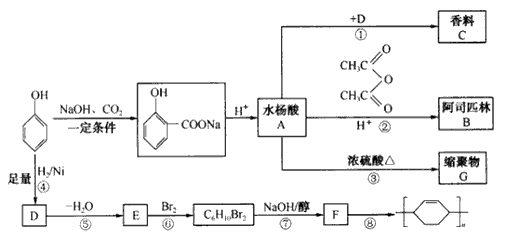 4、填空题 酚是重要的化工原料,通过下列流程可合成阿司匹林、香料和一些高分子化合物。已知:
