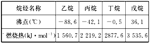 2、选择题 含有2~5个碳原子的直链烷烃沸点和燃烧热的数据见下表