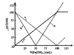 4、选择题 烧杯中盛有100mL1.0mol/L的NaHSO4溶液,向其中逐滴滴加1.0 mol/L的Ba(OH)2溶液,烧杯中某些物质(或微粒)的物质的量的变化曲线如图。下列说法正确的是?(?)