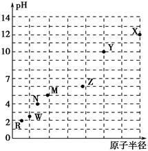 本题解析:由图像可知,X、Y为金属元素,又由于7种元素均有最高价氧化物的水化物,则为第三周期元素;由原子半径可知,X为Na,Y为Mg,Z为Al,M为Si,N为P,W为S,R为Cl,A、D正确。