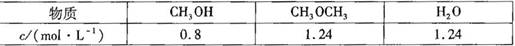 ,某温度下的平衡常数为400。此温度下,在1 L的密闭容器中加人CH3OH,反应到某时刻测得各组分的物质的量浓度如下: