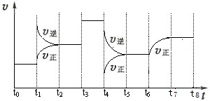(3)t1时刻,正、逆反应速率都增大,逆反应速率更大,平衡向逆反应方向移动,该反应为放热反应,所以改变的条件是升温;t6正反应速率在原来的基础上逐渐增大,则改变的条件不是温度,所以平衡常数不变,所以K(t5~t6) = K(t7~t8)。