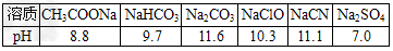 5、填空题 常温下,浓度均为0.1mol·L-1的六种溶液的pH如下表