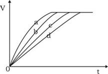 1、选择题 等质量的铁与过量的盐酸在不同的实验条件下进行反应,测定在不同时间t产生氢气体积v的数据,根据数据绘制得到下图,则曲线a所对应的实验组别是