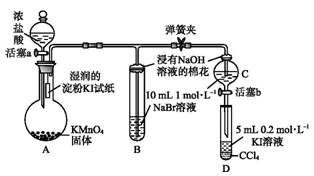 2、实验题 为验证卤素单质氧化性的相对强弱,某小组用下图所示装置进行实验(夹持仪器已略去,气密性已检验)。