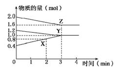 2、填空题 某温度时,在2 L 密闭容器中,X、Y、Z三种物质 的物质的量随时间变化的曲线如下图所示,由图中数据分析: