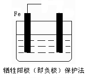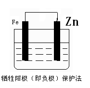 (2)防止钢铁腐蚀的电化学方法有两种,下图中液体为海水,请在图中添加必要的导线、电源,注明另一电极的电极材料名称,使其符合图下所注的保护方法: