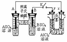 1、选择题 某同学按右图所示的装置进行试验。A、B 为两种常见金属,它们的硫酸盐可溶于水。当 K 闭合时,在交换膜处 SO42一从右向左移动。下列分析错误的是