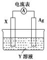 1、选择题 依据氧化还原反应:2Ag+(aq)+Cu(s)=Cu2+(aq)+2Ag(s),设计的原电池如图所示。下列有关说法中错误的是(?)