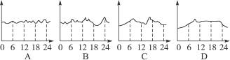 1、选择题 如下图所示各曲线是某环境监测小组描绘的某市中心空气中CO含量变化曲线,横坐标表示北京时间0到24时,纵坐标表示CO含量,你认为比较符合实际的是(? )