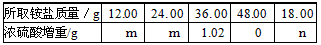 (2)为测定该铵盐中氮元素的质量分数,将不同质量的铵盐分别加入100. 00 mL相同浓度的NaOH溶液中,沸水浴加热至气体全部逸出(此温度下铵盐不分解)。该气体经干燥后用浓硫酸吸收完全,测定浓硫酸增加的质量。(部分测定结果如下表)