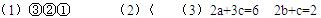 (3)在②中投入3 mol A和1 mol B达平衡;若在相同条件下,起始时在②中投入a mol A和b mol B及c mol C,使两种情况达平衡时容器内C的百分含量相等,则a、b、c的关系为?。